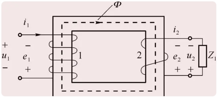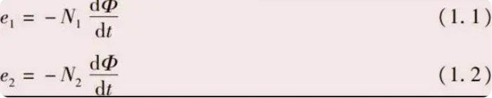 若將繞組1接到交流電源上,繞組中便有交流電流i1流過,在鐵芯中產生與外加電壓u1 相同頻率的且與原、副繞組同時交鏈的交變磁通Φ,根據電磁感應原理,分別在兩個繞組中感應出同頻率的電動勢e1 和e2。