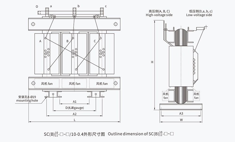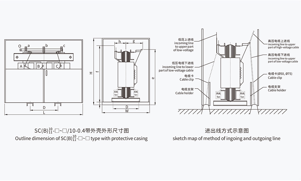 ■SC(B)10-□/□系列樹脂絕緣干式變壓器保護外殼外形尺寸