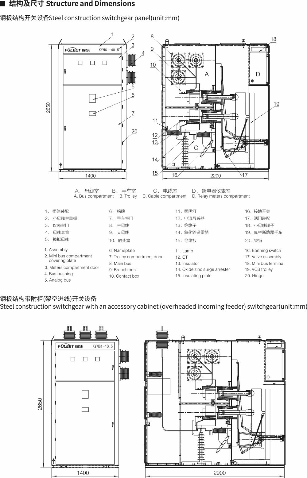 KYN61-40.5開關設備配置性能優良的ZN85A,ZN85B真空斷路器或施耐德公司SF1、SF2或ABB公司HD4或阿爾斯公司FP系列六氟化硫斷路器。柜體采用組裝結構,提高了外觀質量和制造精度;母線采用熱縮絕緣材料或環氧涂覆的絕緣手段,優化電極形狀,柜體結構緊湊,并具備完善的“五防”功能。