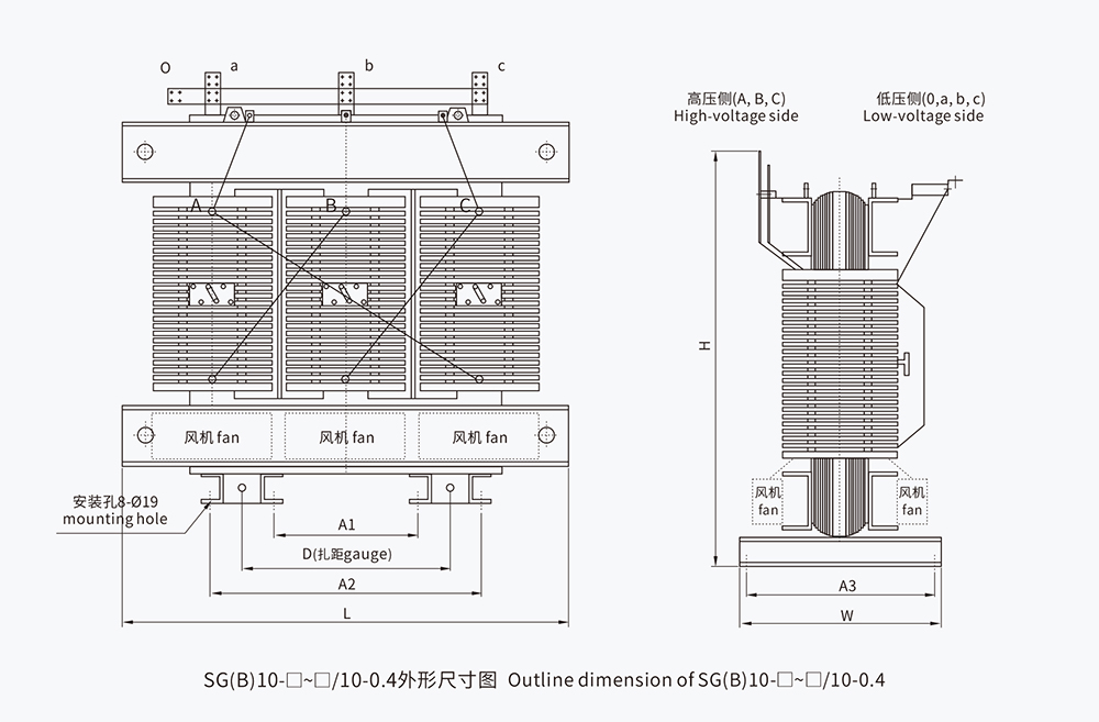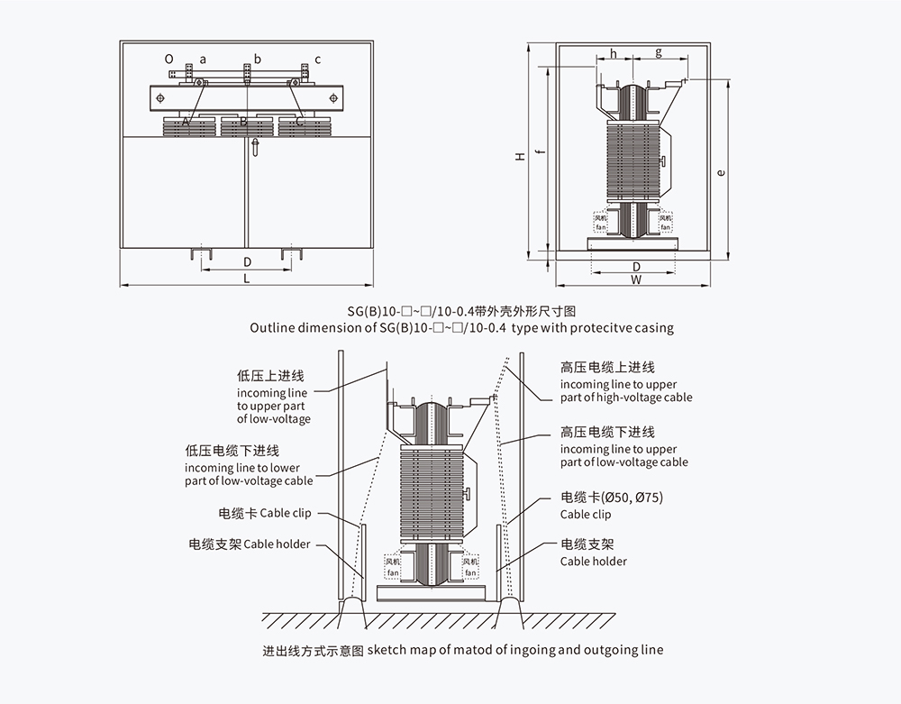 SG(B)10 H級絕緣干式變壓器帶保護外殼外形尺寸