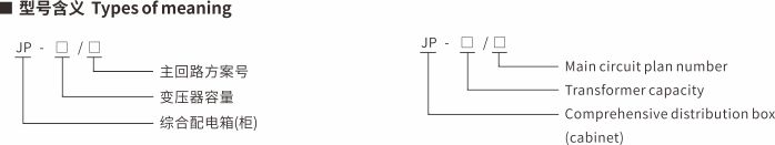 JP系列戶外綜合配電箱(柜),可具有配電,補償,計量三種基本功能。用戶可根據需要選擇不同方案,具體方案號如下